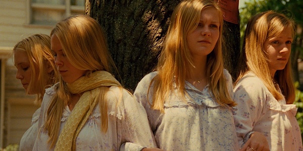 It’s a suburban town in the 1970s. The Lisbon family consisting of parents Kathleen Turner and James Woods and their five daughters: Cecilia (Hanna Hall), Lux (Kirsten Dunst), Bonnie (Chelse Swain), Mary (A.J. Cook), and Therese (Leslie Hayman) reside in a sleepy town. Things seem fine, but when one of the daughters takes her life, the family is devastated.
